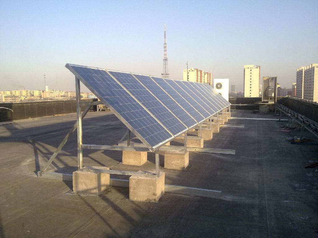 新能源技术实验室简介 辽宁工业大学新能源技术实验室始建于2011年,由辽宁工业大学与许继电气集团公司共建。 新能源技术实验室主要由微电网技术实验室和新能源技术基础实验室组成。 一、微电网技术实验室 包括风力发电单元、光伏发电单元、储能系统单元、负载单元、微电网控制管理中心以及实验终端在内的智能电网系统构成。 微电网实验系统额定装机容量10.5kW。设备包括: 1)12块利用楼顶建设的发电峰值容量3kWp的多晶硅平板并网光伏发电系统; 2) 8块利用地面建设的发电峰值容量2kWp的单晶硅平板跟踪并网光伏发电系统; 3) 3块利用地面安装具有微风启动、轻风发电特点的2kW小型风力发电系统,形成安装容量为6kW的小型风力发电系统; 4)由胶体电池(12V,100AH)36只,UPS(MP11-10K)一台及超级电容构成的储能装置; 5)以智能家居为主的系统负荷; 6) 由96台计算机构成的能与微网集中控制中心互动的试验终端。 二、新能源技术基础实验室 主要由光伏发电系统检测试验台及太阳电池组件测试仪构成。 检测试验台上的设备主要包括逆控一体机、并网逆变器、蓄电池、电压表、电流表及充放电回路等。配套设备包括模拟负载、模拟光源、光伏太阳能电池板(单晶、多晶、非晶)。 检测试验台可实现如下实验:1)离网运行;2)并网发电;3)不同材料的太阳能电池效率比较;4)蓄电池充放电;5)光照强度对发电质量的影响等。 太阳电池组件测试台系统组成:太阳模拟器、计算机, 软件, 打印机, 测试柜。测试系统的基本工作原理是:当太阳模拟光照到被测太阳电池组件上时,用电子负载控制太阳电池组件中电流变化,测出组件的伏安特性曲线。