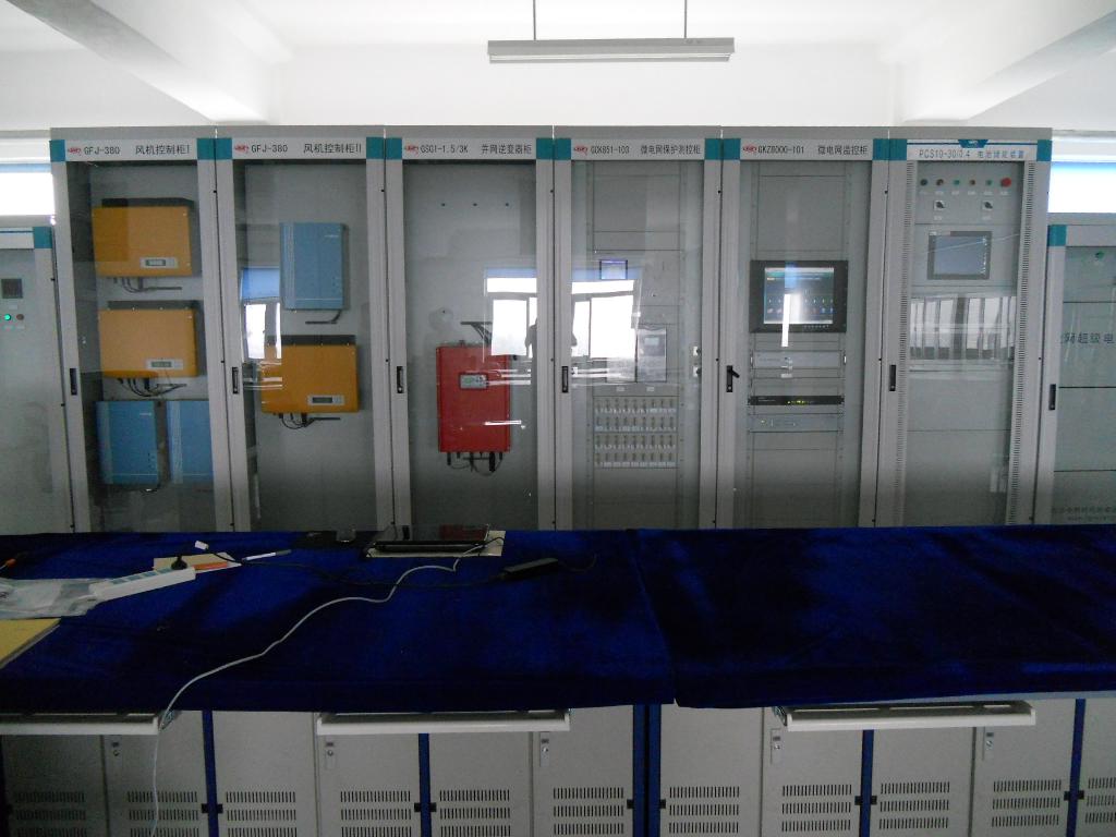 新能源平台实验系统由以下几个部分组成:多晶硅组件的3kWp光伏发电并网系统、单晶硅组件的2kWp跟踪光伏发电并网系统、安装容量为6kW的小型风力发电系统、20kW/50kWh储能系统、微电网控制系统、部署包含了二次测控保护、通讯与数据采集在内的设备和微电网集中管理系统,实现与供电网络的协调运行,最终建成一个包含智能配电、风、光、储、微多种智能电网要素结合的实验的系统。