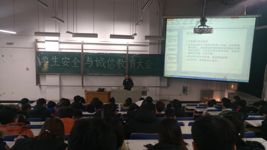 12月13日下午,新能源学院(软件学院)针对即将到来的期末考试,分团委书记王玉老师、辅导员张超老师在7号教学楼217教室和203教室分年级进行考前动员大会及安全教育大会。